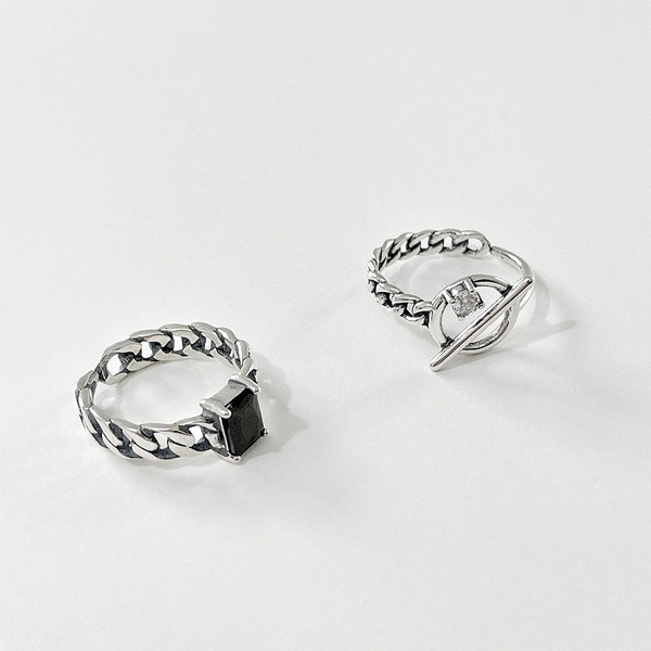 s925 sterling silver chic silver black agate adjustable ring