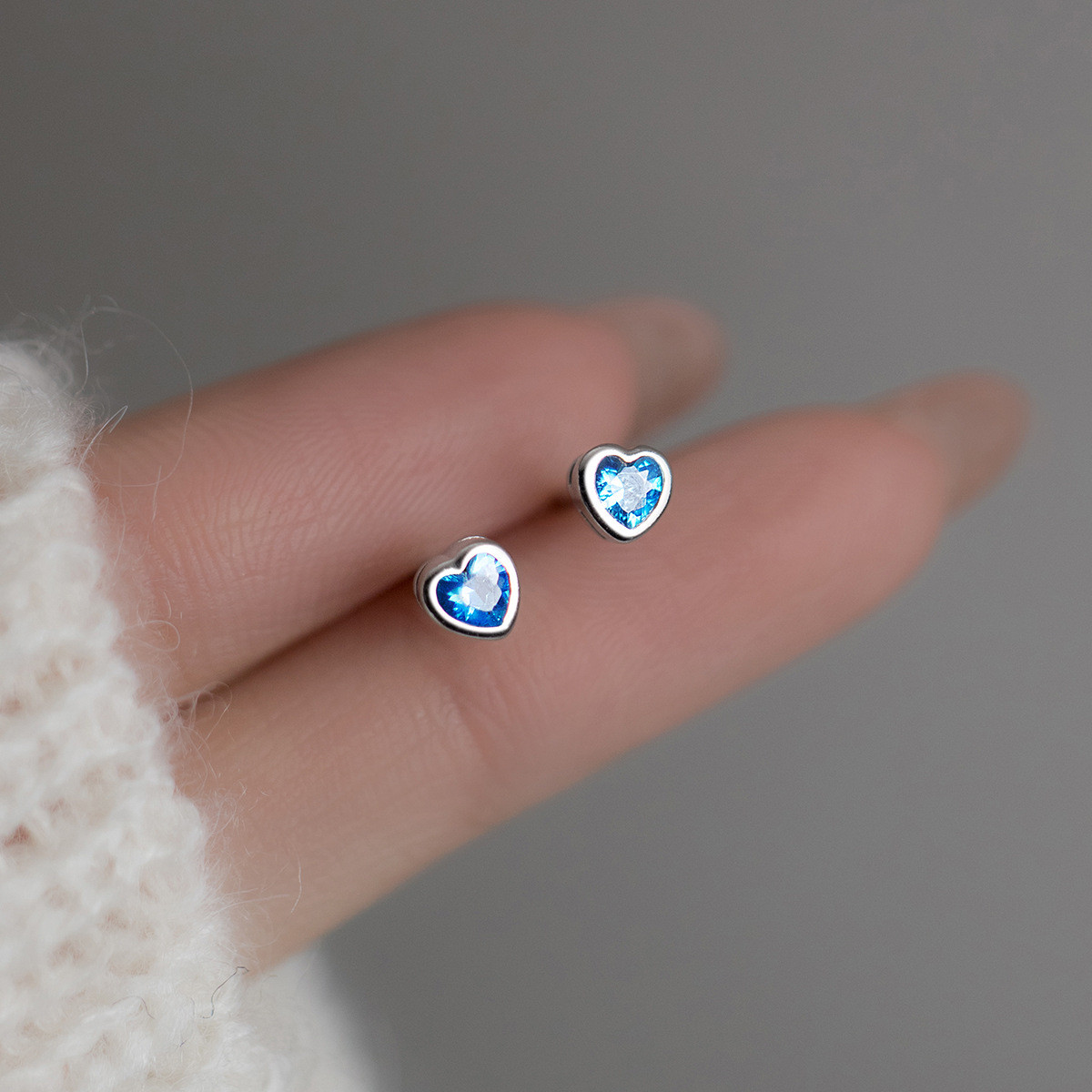 s925 sterling silver dainty pink rhinestone heart stud earrings